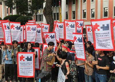 教育部積極促成公立大學合併,上百名南藝大學生7日到教育部遞交陳情書,盼教育部能停止與成功大學的合併案。圖/中央社