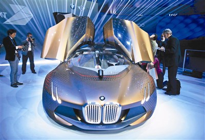 【本報綜合外電報導】德國BMW七日慶祝一百歲生日,推出充滿未來感的概念車Vision Next 100來慶祝,招牌的雙腎水箱護罩搭配金色車身,竟然連輪胎蓋都一體成型超搶眼,自動駕駛功能已是標準配備,方向盤還能收起來,且是環保的全電動車,除向勁敵賓士發表的自駕未來車正式宣戰外,也挑戰下一個一百年。