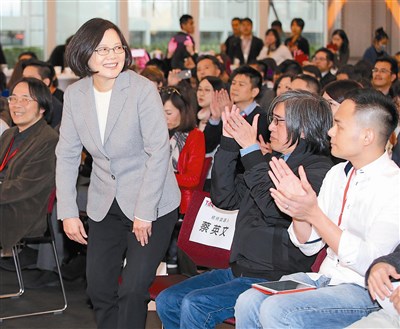 面對台下的「學姐」蔡英文,林之晨提出政府對網路產業幫助的三大建言,包括將網路列為國家級戰略、優先行業,在立法、政策上偏袒網際網路。