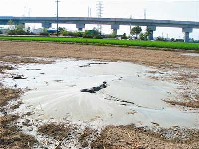 台南縣新化鎮北勢里一帶,地震過後地底冒出大量泥漿,專家指出這是地震後的土壤液化現象;因鄰近高鐵,令民眾相當憂心。