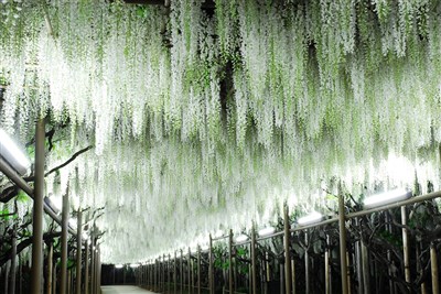除了芝櫻,紫藤花也是足利花卉公園必賞美景,擁有超過1000平方公尺面積,樹齡超過150年,漫步在白藤花、紫藤花和黃藤花等不同的藤樹下,又是另一種浪漫,4月16到5月22日的大藤祭點燈更被列為日本夜景遺產。