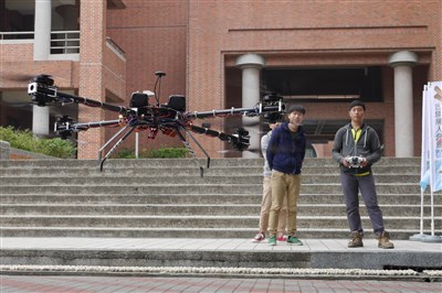 成大師生設計出8旋翼無人飛機,載重15公斤,克服用電效率及載重等問題,以延長飛行時間達1小時。圖/鄭維真