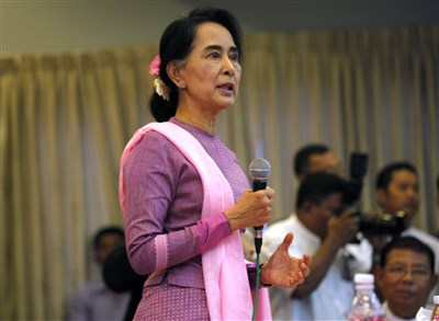 緬甸執政黨全國民主聯盟(NLD)今天表示,諾貝爾和平獎得主翁山蘇姬確定出任外長。圖/美聯社