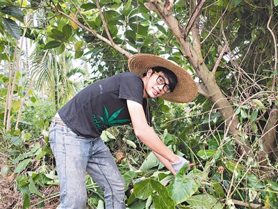 屏科大農園系學生吳昆達替人清理墓園雜草賺錢。圖/林良齊