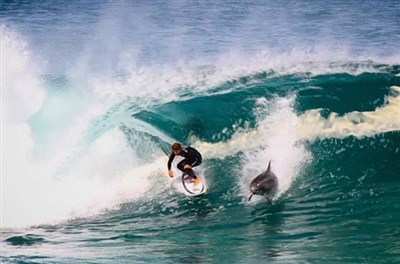 不過,當貝里看到自己與海豚的合照後開心表示,「從來沒有跟海豚在浪上有這麼近的接觸,且被捕捉到的照片也非常不可思議。」事後,貝里也將自己與「黑影」海豚的合照放上Instagram,獲得超過2千名網友的點讚。