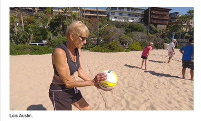哥倫比亞廣播公司(CBS)報導,這位祖母級排球員名叫奧斯汀(Lois Austin),她每週和其他老球友打2次排球,其中最年輕的威廉斯(Lori Williams)也已59歲。