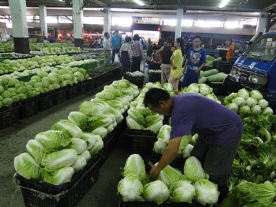 【本報台北訊】小市民痛苦指數飆升。台北果菜市場今日蔬菜批發市場價格站上每公斤56.1元,為史上新高,市場上一顆高麗菜飆破百元、小白菜要80元至90元,一顆木瓜80元、一顆芭樂快50元,不僅本產蔬果,就連進口蔬果,也齊聲喊漲,小市民感嘆,就連民生基本蔬菜水果,都漲得這麼高,生活越來越難過。
