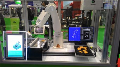 現在透過具3D智慧視覺感測功能的自動取放整列系統,機械手臂就能自動立體掃描零件區,並判斷使用何種角度,正確夾起零件。