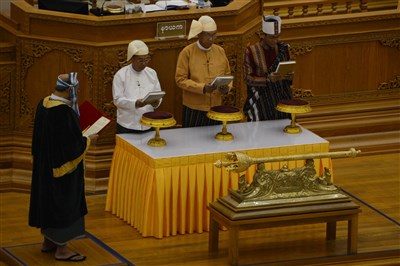宣誓就職典禮在首都奈比多舉行,標示著翁山蘇姬所屬全國民主聯盟在去年11月選舉後進入實質掌權階段。這個人口5100萬的國家正處於民主轉型的陣痛中,在政治上逐漸走出軍人政府陰影,在經濟上向全世界開放。