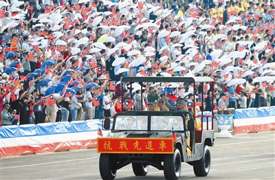 律師高秉涵(下圖)幫助逾百名過世獨居老兵「回鄉」,右圖為紀念抗戰勝利七十周年戰力展示,老兵著複刻軍裝進場。圖/資料照片、新北市民政局提供