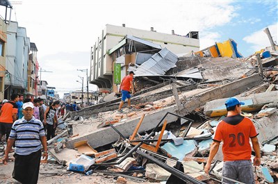 厄瓜多遭逢規模7.8的強震,不少建築物在強震中倒塌。