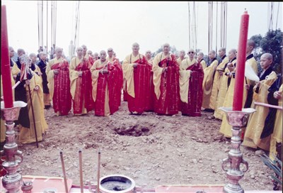 10年 開山奠基時期 1967~1976 年 |2016.05.14 語音朗讀 3780觀看次 字級 大 中 小 一九七一年大悲殿落成,內政部長徐慶鐘(右)剪綵致詞。 一九七一年大師主持大悲殿開光典禮。 一九七三年行政院長蔣經國蒞臨佛光山。 1968年 12月15日 大師主持佛光山首棟建築──東方佛教學院落成典禮。 1967年 6月18日 「東方佛教學院」院舍暨西方安養院(佛光精舍)舉行奠基典禮。 1975年 10月7日 佛光山迎請旅日僧侶仁光法師贈送的《鐵眼版大藏經》一部。 1975年 11月16日 大師、煮雲法師主持佛光山大雄寶殿奠基典禮。 1976年 5月17日 首次舉辦老人夏令會。 佛光山開山時期的不二門與後方興建的朝山會舘。 1967年 5月16日 為光大佛法,大師在高雄縣大樹購得二十餘甲麻竹園作為建寺用地,五月十六日動土,定名為「佛光山」,並訂下四大宗旨──以文化弘揚佛法、以教育培養人才、以慈善福利社會、以共修淨化人心。 有鑑於台灣佛教教育積弱不振,星雲大師決定仿照大陸名山古剎的規制,創建一座叢林道場。同時,為培育僧伽人才,一九六五年在高雄創辦壽山佛學院;後因學生人數增多、場地不敷使用,一九六七年在高雄大樹購得二十餘甲高低不平的麻竹園開山奠基,五月十六日動土,定名「佛光山」,並將壽山佛學院遷回,率領弟子及學生胼手胝足開墾建設。於最初十年草創期間,陸續將東方佛教學院、大悲殿、觀音放生池、龍亭、彌勒佛像、大慈育幼院、朝山會舘、大佛城、佛光精舍、大覺寺等興建完成。 至今佛學院已培育五千餘畢業生,服務於海內外,為中國佛教的發展開創新紀元。 1967年 5月16日 為光大佛法,大師在高雄縣大樹購得二十餘甲麻竹園作為建寺用地,五月十六日動土,定名為「佛光山」,並訂下四大宗旨──以文化弘揚佛法、以教育培養人才、以慈善福利社會、以共修淨化人心。 6月18日 「東方佛教學院」院舍暨西方安養院(佛光精舍)舉行奠基典禮。 7月29日 壽山佛學院第一屆學生組成「弘法佈教團」,在大師帶領下,前往澎湖弘法佈教四天。 10月30日 佛光山壽山佛學院更名為「東方佛教學院」,同時設立沙彌學園。 12月1日 在大師指導下,佛光山組織宗務委員會。 1968年 1月7日 佛光山東方佛教學院舉行第一屆畢業典禮,計有慈嘉、慈怡、心如、依嚴等二十名畢業生。 7月15日 大師率領東方佛教學院第二屆應屆畢業生三十二人,組成「環島佈教團」,為期二十五天。 12月15日 佛光山大悲殿開工興建。 12月15日 大師主持佛光山首棟建築──東方佛教學院落成典禮。 1969年 3月 慈惠、慈嘉、慈怡法師相繼赴日深造,分別就讀日本大谷、佛教等大學,為佛光山派遣海外首批留學僧。 4月6日 東方佛教學院開辦第一期「佛學講座」,道源長老親臨主持。 7月28日 大師創辦第一期「大專佛學夏令營」,有百餘名青年參加,為佛教史上的一項創舉。 7月28日 台灣郵政管理局於大專夏令營期間,由九曲堂郵局在佛光山設置臨時郵局。 一九七一年一月一日正式批准成立佛光山郵政代辦所。 9月11日 東方佛教學院創辦「民眾講習班」,結業後學員因存感念,發心參與龍亭建基。 1970年 2月18日 世界各國的天主教道明會神父、修女等八十餘人,由梅達明神父帶領蒞山訪問。 3月7日 佛光山觀音放生池、寶橋、香光亭同時興建。 9月18日 泰國華宗尊長普淨上座一行二十人來山訪問。 11月9日 佛光山首創交通車。每日上午九時及下午二時由壽山寺開往佛光山,中午十二時及下午四時由佛光山開往壽山寺。 12月15日 大師與交通銀行經理徐槐生創辦的大慈育幼院開幕,由慈容法師擔任院長,展開慈幼服務。 12月 行政院副院長蔣經國蒞山拜訪大師。 1971年 4月11日 萬佛大悲殿落成暨萬尊觀音聖像開光,為佛光山第一座殿堂。 此外,寶橋、觀音放生池、開山紀念碑、龍亭、香光亭及彌勒聖像等亦同步開光落成,計有十萬人參加慶典。首次啟建在家五戒、菩薩戒戒會。 4月26日 佛光山頭山門動土開工。 8月5日 佛光山接辦由基督教創辦的宜蘭仁愛之家。 1972年 5月 新加坡總理李光耀伉儷來山訪問。 6月4日 佛光山覺華園揭幕開放使用。 10月9日 台視播出改編大師《釋迦牟尼佛傳》的《佛祖傳》連續劇。 1973年 3月16日 朝山會舘啟用,為教界首座專為信眾食宿使用之建築,慈莊法師擔任第一任館長。 6月16日 行政院長蔣經國蒞山,對佛光山至表讚揚。 8月13日 大師於壽山寺首開盂蘭盆法會,並倡導每年七月十五日為「僧寶節」、七月為「孝道月」。 9月18日 創辦「佛光山叢林大學」是全國第一所佛教大學,後更名「中國佛教研究院」,分研究部、大學部,今名「佛光山叢林學院」。 1974年 2月1日 印度中華佛寺住持廣清法師將其珍藏的佛陀涅槃塔上的梵文磚塊,贈送大師,作為大雄寶殿鎮地寶物。同時將其在印度請回的佛陀真身舍利,供養大師。 3月7日 大佛城動土興建。 4月7日 大師任「中日佛教關係促進會」會長,率領心平、慈惠、依嚴等法師赴日訪問。 7月 萬壽園經台灣省政府社會處批准立案。 9月7日 佛光山首次召開「信徒會員大會」,二千餘人參加,往後每年舉行。 9月 每周定期舉辦的「佛光山朝山團」台北區首次舉行,大師首創「朝山列車」。 9月 佛教文物陳列館開工興建。 11月16日 大智殿及宗仰上人紀念館開工興建。 1975年 3月18日 《覺世》旬刊由慈惠法師擔任發行人,為佛光山對信眾傳播人間佛教
