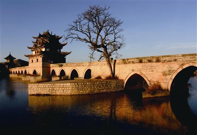 心如橋梁,給人方便。圖為雲南雙龍橋,位於大陸雲南省建水縣瀘江河和塌衝河交匯處,是一座十七孔大石拱橋,建於清代,橋上建有亭閣三座,是我國連拱石橋中的佳作。圖/新華社