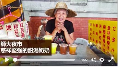 「善耕365公益媒合平台」臉書專頁昨貼出師大甜湯奶奶的故事,貼文提到,甜湯奶奶一賣已經40幾年,當初會出來做生意,是因為丈夫年輕時做水電,被騙了好幾百萬,不得已出來擺攤慢慢還債。現在丈夫中風了,甜湯奶奶仍舊守著攤子、照顧老伴。