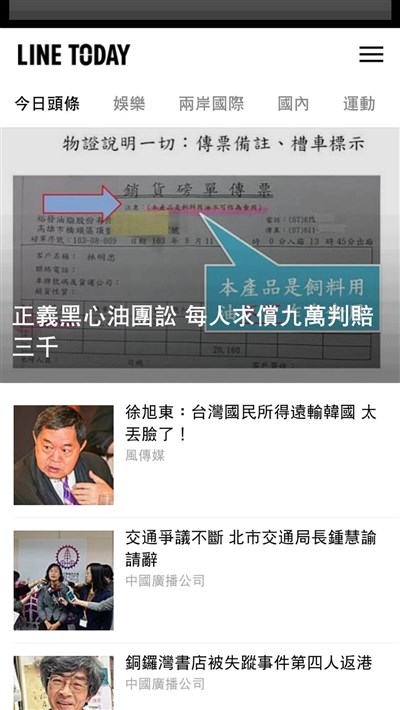 LINE表示,用戶所觀看的新聞內容來自中央通訊社、NOWnews 今日新聞、中時電子報、中國廣播公司、科技紫微網、風傳媒、華人健康網、韓星網等合作夥伴,廣大的LINE用戶現在能更加便利地在LINE中一次閱讀到多家媒體的新聞。