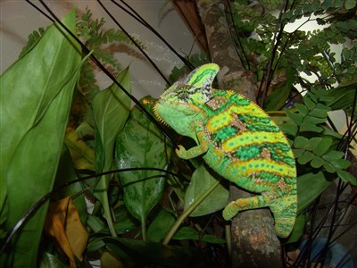 台北市立動物園表示,變色龍的體表顏色,會依心情及生理狀態而改變。圖/中央社