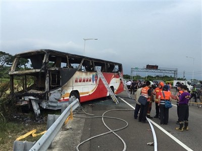 國道遊覽車起火26人全罹難 死者擠在逃生門旁