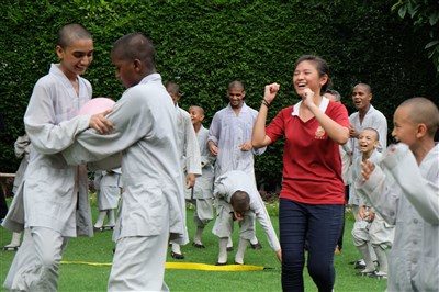 中華佛光青年團12名年輕人由法師帶領,與印度小沙彌們一起學習,今天更協助舉辦運動會,和小沙彌們一起同樂。