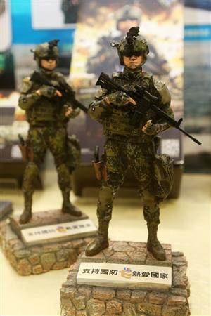 【本報台北訊】國防部今年以國防自主為主軸,製作7種文宣紀念品,如國軍特戰公仔、雲豹甲車萬年曆、沱江級艦手機座、經國號Q版戰機等,民眾參加軍方相關活動,都有機會獲得這些文宣品。