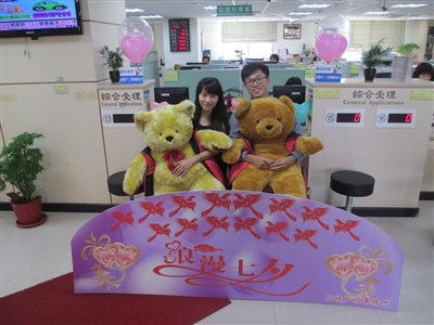 畢業後,張小姐在花蓮攻讀碩士,張先生回到板橋工作,兩人交往過程來回奔波,在今天七夕情人節,到板橋戶所許下終生。