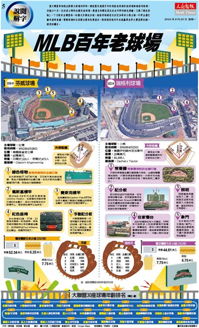 MLB百年老球場 |2016.08.22 語音朗讀 2053觀看次 字級 大 中 小 MLB百年老球場 當大聯盟爭相推出新穎大球場的同時,建造歷史超過百年的兩座老球場芬威球場與瑞格利球場,仍魅力十足。位於波士頓的紅襪芬威球場,最著名的標記是位於左外野的綠色高牆,又稱「綠色怪物」,下方設有全聯盟唯一的舊式手動記分板;瑞格利球場是位於芝加哥的小熊主場,外野全壘打牆布滿常春藤,緊鄰球場的住家陽台還有收費座位,與球隊突破百年未能贏得世界大賽冠軍紀錄一樣受到矚目。 前一篇文章 癌細胞 怕什麼 下一篇文章 中華民國護照看我18變 熱門新聞 01【閃文集】火星暗斑之謎2025.12.1602【詩】草螟公2025.12.1803【為人父母】 允許如其所是2025.12.1504【詩】 航夢2025.12.1505東方微笑跨越千年 麥積山石窟現佛館2025.12.1506寶塔寺 三代同堂搓湯圓、繪燈籠2025.12.1607佛光山福國寺 獲頒台南市宗教績優團體獎2025.12.1508如何優雅不濺水花?2025.12.1609人間佛教在菲律賓2025.12.1410高雄新航線明啟動 佛光山成亮點2025.12.17 訂閱電子報 台北市 天氣預報 台灣一週天氣預報 相關報導 大學校名怎麼來?