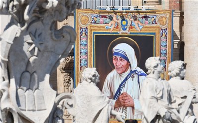 德雷莎修女的肖像高掛在聖伯多祿廣場。圖/法新社