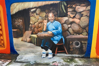 高雄大陳彩繪故事巷,畫出老奶奶的三寸金蓮。圖/劉星君