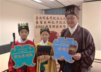 【本報台北訊】台北市民政局今天說,「孔子誕辰2566周年釋奠典禮」28日在台北孔廟登場,民眾明天起可至孔廟免費索取參禮證,典禮結束後,還會發限量特色紀念品。