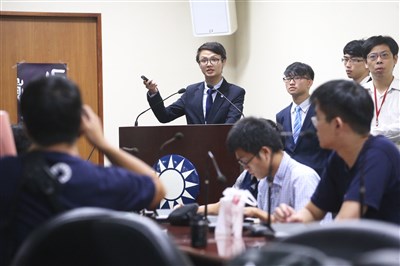 林于翔則是桃園市議員林政賢助理,他說,國民黨應成立青年組織交流小組,結合學校和社會的青年交流,並舉辦地方模擬議會、中央國會模擬議會,從中培養戰將,建立青年人才庫。