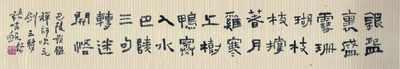 ●詩堂書法: 銀←裡盛雪、珊瑚枝枝撐著月、雞寒上樹,鴨寒入水,巴陵三句吹毛劍,轉迷開悟上上機。