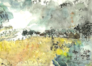 朋友寄來的信附有一張泰山在雨中的風景照片,照片的背面寫了些想法「這一路泰山行有雨勢相隨,看到有聲有勢的飛泉流布,傾盆大雨時,恰好又在古剎躲過,有雨趣而無淋濕之苦,格外感到意興盎然。」的確,老大一座高山,雨將煙和霧湊成一塊,周遭的巨水碰著嶙嶙亂石,激起一片雪白水珠,回漩至水面,若沒有雨,這種瑰奇景色,怎可能在一紙之薄顯現呢?