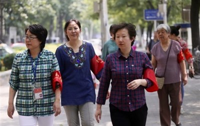 「朝陽群眾」的身影隨處可見而且舉報頻率也最高,被大陸網友戲稱為世界五大王牌情報組織之一。圖為北京部分紅袖大媽在社區巡邏。圖/取自網路