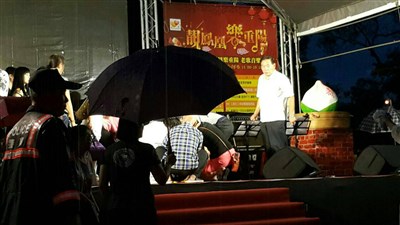 迎接重陽節,各地都有慶祝活動,鳳山區公所在衛武營藝術中心空地上舉辦重陽敬老表演,請來人氣歌王郭金發。