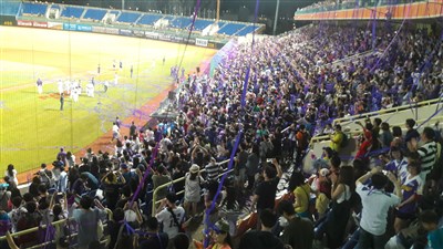 中華職棒義大犀牛隊8日晚間在斗六封王,將在7戰4勝制的總冠軍賽與中信兄弟爭霸。圖為球迷興奮從觀眾席拋下彩帶。圖/中央社