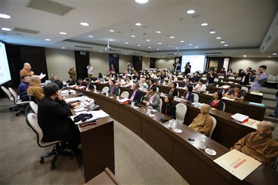 星雲大師為新馬媒體團開示,大眾紛紛提出疑問,大師也一 一釋疑,皆大歡喜。圖/人間社記者慧延