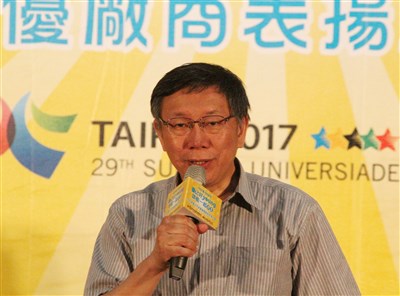 台北市長柯文哲今日出席活動時致詞表示,節能減碳是台北市的政治信念和價值,會繼續推行,像市府大樓禁用一次性餐具,讓紙類和塑膠類垃圾大量減少,希望可推行至民間企業。圖/中央社