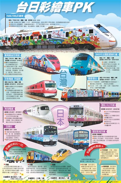 台日彩繪車PK圖片提供/台鐵(邱家終、顏贊成、施萬隆)、高鐵、舘田達也、靜岡鐵道株式會社官網、網路