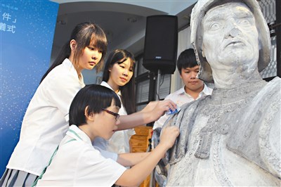 選修的學生梁家欣說,以往只能在美術館看到的雕塑品,現在能在學校近距離接觸,覺得新奇,加上能動手修復感到很開心,為了解這個作品,要花時間學習歷史、英文和藝術史知識,受益良多,以前來閱覽室都覺得苦悶,現在多了「將軍」一起讀書,更有趣!