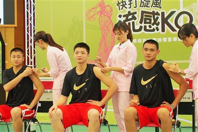 疾管署1日到南山高中宣導接種流感疫苗,南山高中HBL暨亞運國家代表隊球員施打疫苗。圖/中央社