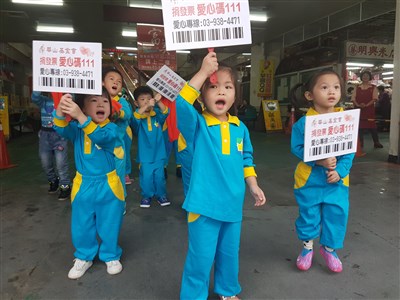 財團法人華山基金會宜蘭站每年向民眾募集愛心發票,照顧獨居老人生活起居,但近年來隨著發票電子化,受贈發票逐年下降,為了鼓勵更多人投注愛心,串聯鎮長林姿妙行動支持,並請來幼稚園小朋友扮成象徵吉祥的舞獅,穿梭人來人往的民生市場鬧區,募集發票與現金。