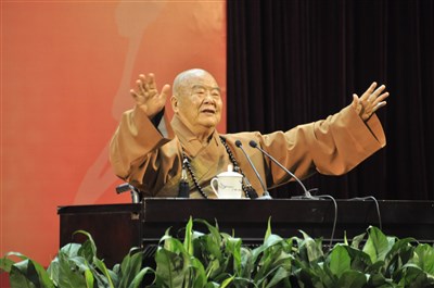 2004年佛光山開山星雲大師於大陸廣西人民大會堂講演「看見夢想的力量-從禪門公案說起」。圖/資料照片