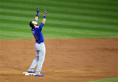 小熊隊佐布里斯特(Ben Zobrist)10局上敲出超前安打,助隊以8:7贏球。圖/路透