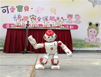 上午嘟嘟機器人也擔任「 居家托育服務中心暨早療宣導活動」開場來賓,以靈巧舞蹈帶動現場氣氛。