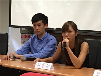 香港立法會宣誓風波的青年新政議員梁頌恆(左)和游蕙禎(右)日前應邀到台大演講香港本土化運動。本報資料照片