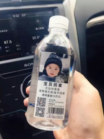 大眾網報導,這間公司市場部王姓經理表示,公司團隊從影星劉德華主演的尋親電影《失孤》得到啟發,因此推動「寶貝回家」礦泉水計畫。他們與大陸最大的失蹤兒童網站「寶貝回家」聯絡,今年7月經家長授權,將失蹤兒童的照片、資料及親人聯絡電話印到礦泉水瓶身。