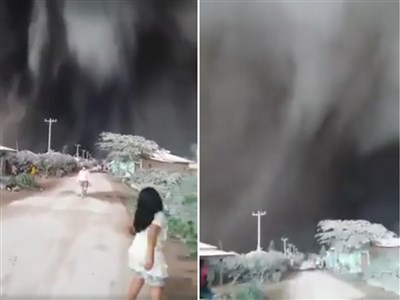 也有網友指出,這是蘇門答臘島上的西納彭火山(Mount Sinabung)噴發後,從納曼村(Naman)拍攝到的景象。