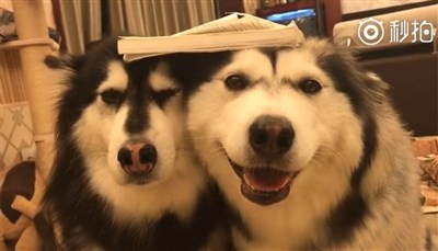 這2隻哈士奇「臉貼臉」頂著書的可愛模樣也引起大陸網友熱烈討論,更創下逾6萬次分享,還有人留言笑稱2隻闖禍哈士奇「搗蛋姐妹花,快樂不分家」。