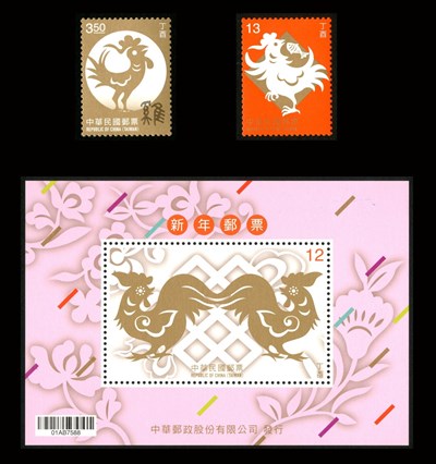 中華郵政指出,本組新年郵票採用剪影手法呈現公雞英姿煥發模樣,並輔以金色及橘紅色背景,傳達出雞年吉祥與喜慶的歡樂氛圍;小全張背景以溫暖的淡粉紅色為基調,搭配花朵及彩色斜線,以朝氣與活力慶祝新年到來。