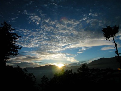 阿里山日出美景享譽國際,循著地形、山勢與天時配合,阿里山森林遊樂區的對高岳觀景台、祝山,以及小笠原山,遊客可以觀看到燦爛奪目的日出。圖/資料照片