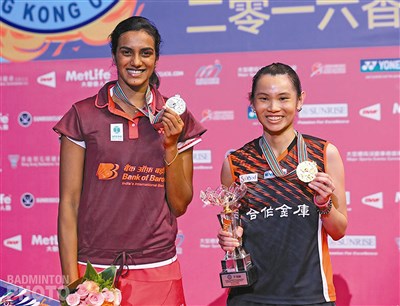 羽球排名積分採1年中最好的10站成績,戴資穎今年在獎金和積分最高的頂級超級系列賽戰績斐然,5站成績都從4強起跳,留下1冠、2亞,積分大進補;昨落幕的香港超級系列賽是1年12場超級系列賽的最終站,排第4種子的小戴一路過關斬將,4強賽先拍下馬琳,昨碰上里約奧運銀牌、印度女將辛德胡,只花41分鐘就以21:15、21:17勝出,摘下今年第2座超級賽金盃。